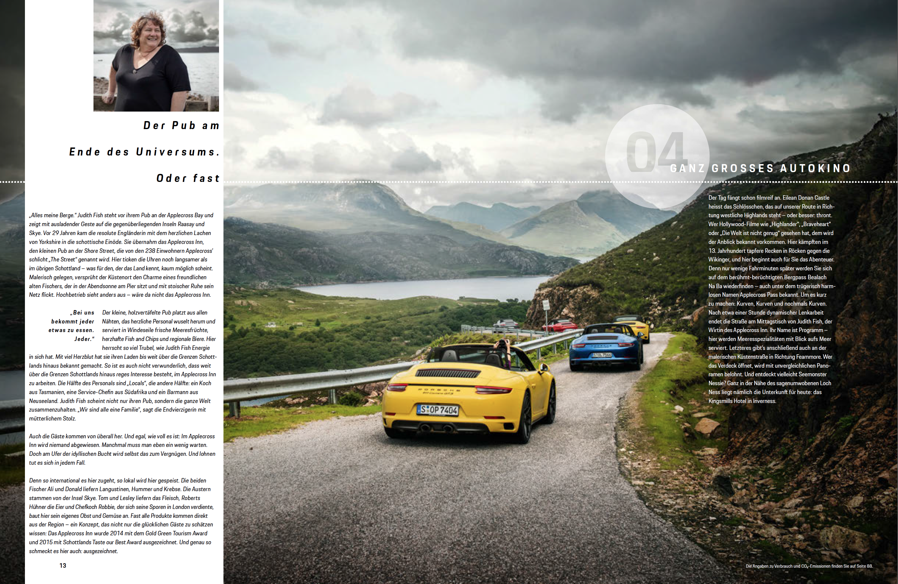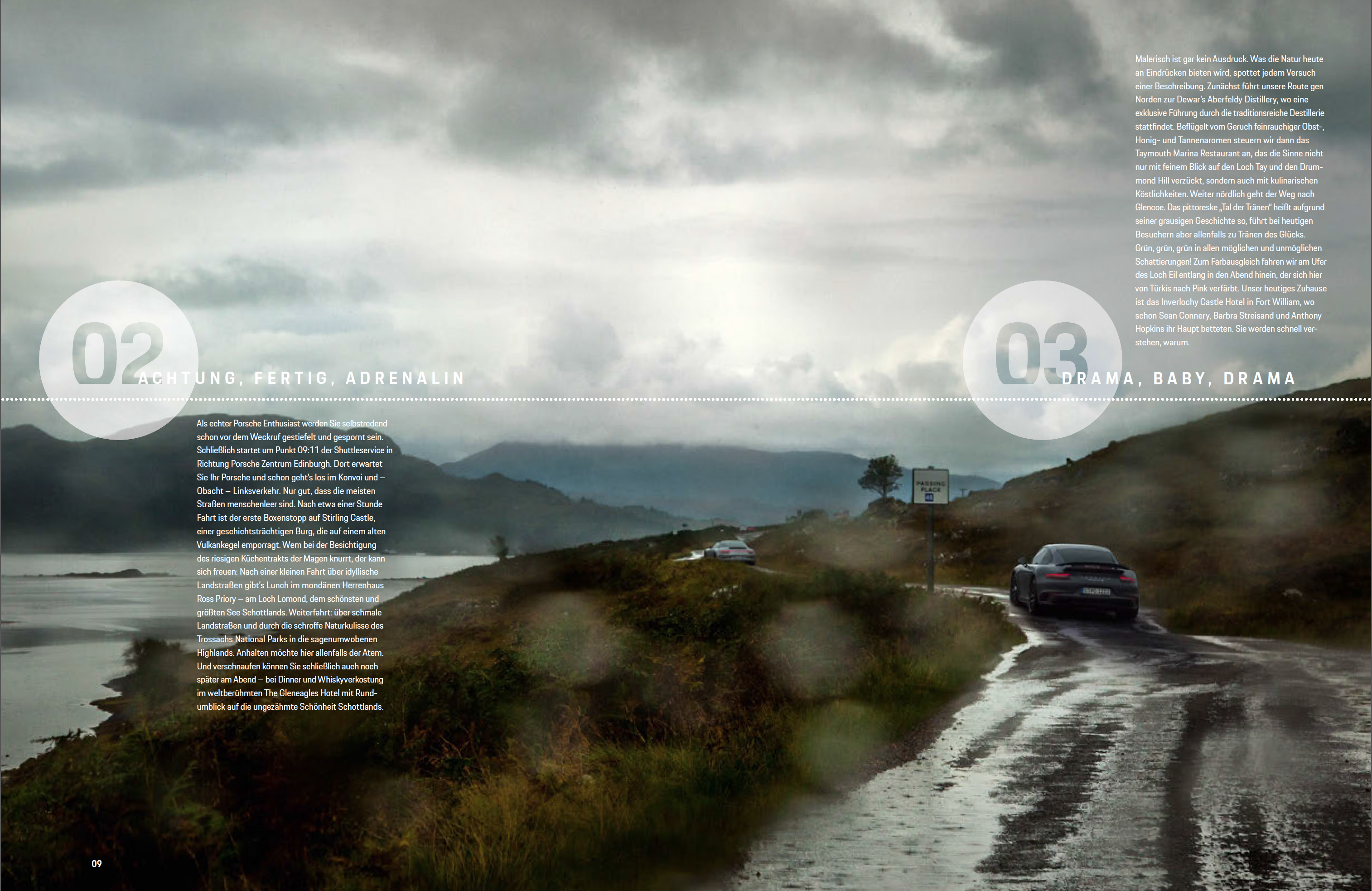 Zum Beispiel auf einer Fahrt durch schottische Haarnadelkurven. Kunde: Porsche. Agentur: Grabarz & Partner. Job: Copy – zusammen mit Jan Ostendorf.